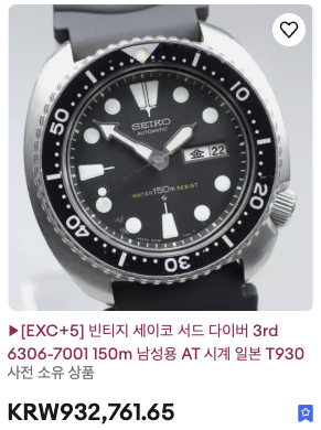 구입동기시계중에 다이버 워치가 없어서 부담없이 찰수 있는 시계를 찾아보던 중 터틀이 너무 이뻐보여 알아보았다. 터틀의 역사6105 최초의 터틀1968년부터 생산된 제품으로 1세대 8000/8009과 2세