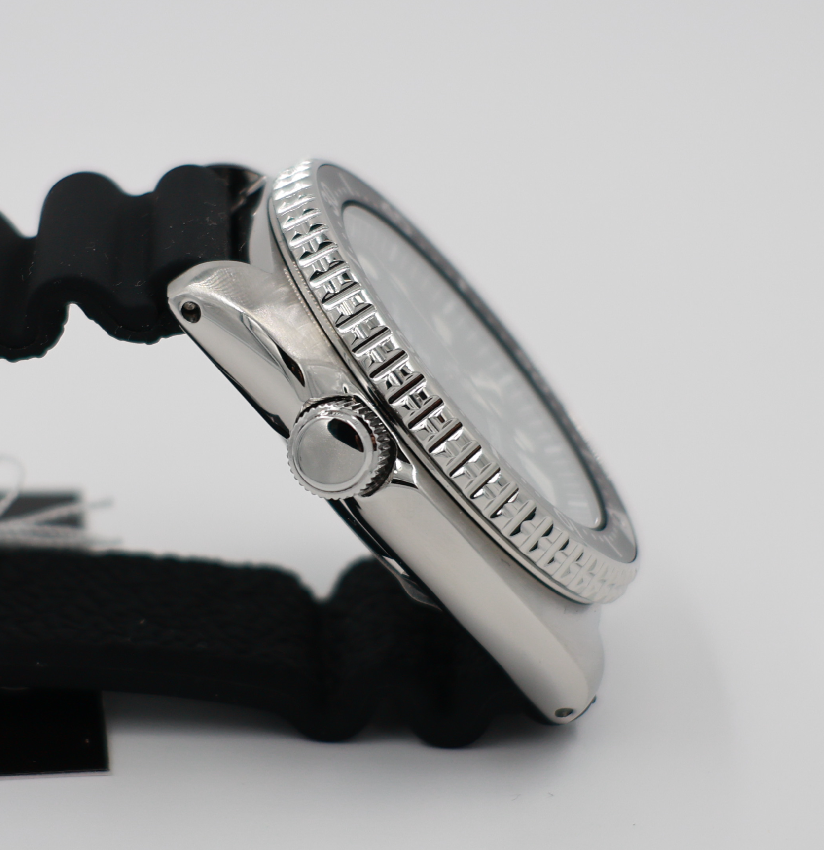 보통 시계브랜드들은 용두에 브랜드 마크를 넣는데 해당 시계는 마크 없이 유광으로 폴리싱 처리 되어 있었다. 조금 밋밋한 느낌이 들었다.